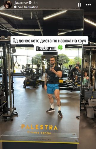 Na svoeto Instagram stori, Lazarov spodeli fotografija na koja se gleda kako se podgotvuva za noviot način na ishrana, dodavajḱi kratka, no jasna poraka: „Od denes keto dieta po nasoka na kouč @pakigram!“