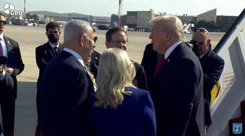 На аеродромската церемонија во Тел Авив, лидерите се ракуваа и накратко разменија формални изјави пред медиумите и дипломатите. Посетата на Трамп се смета за дипломатски сигнал на поддршка за Израел во чувствителен период за регионот.