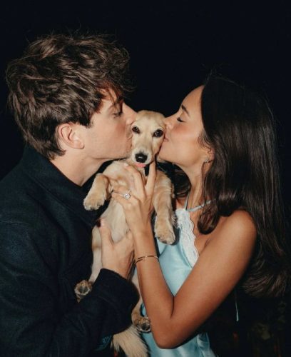 Во објавата, Шарл исто така вклучи слика од кучешко ланче на кое пишува „Татко сака да се ожени со тебе!“, како и фотографии од романтичната атмосфера, украсена со безброј црвени рози, свеќи и слатки.