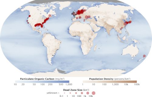 Дополнителен проблем претставува и човечкото влијание врз екосистемите. Прекумерното користење на ѓубрива и хемикалии во земјоделството создава вишок хранливи материи кои преку реките завршуваат во морето. Тоа доведува до еутрофикација – процес при кој одредени микроорганизми прекумерно се размножуваат и го трошат достапниот кислород, создавајќи т.н. „мртви зони“ во кои животот едноставно не може да опстане.