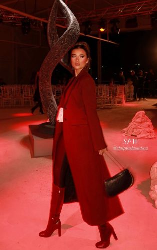 Илариа во црвен стилски капут, и високи чизми. Впечатлива во секој поглед