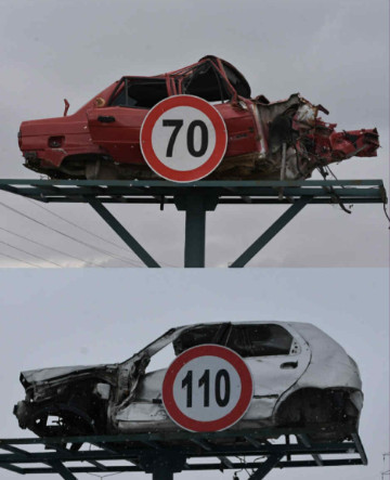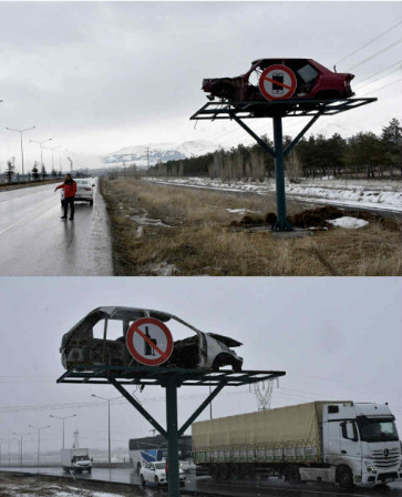 Во Турција, властите пронајдоа моќен начин за подигање на свеста за безбедност на патиштата преку изложување на разурнати автомобили покрај автопататите.